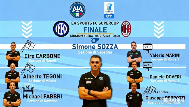 而根據(jù)《體育報》的報道:官方尚未公布超級杯決賽的裁判人選,是因為他們要等到半決賽結(jié)果出爐之后再根據(jù)情況指派。如果那不勒斯進了決賽,那么決賽的主裁判將是科隆博(Colombo)【科莫】;而反之如果那不勒斯輸了,那么圭達(Guida)【那不勒斯】將會執(zhí)法此后進行的對決。
